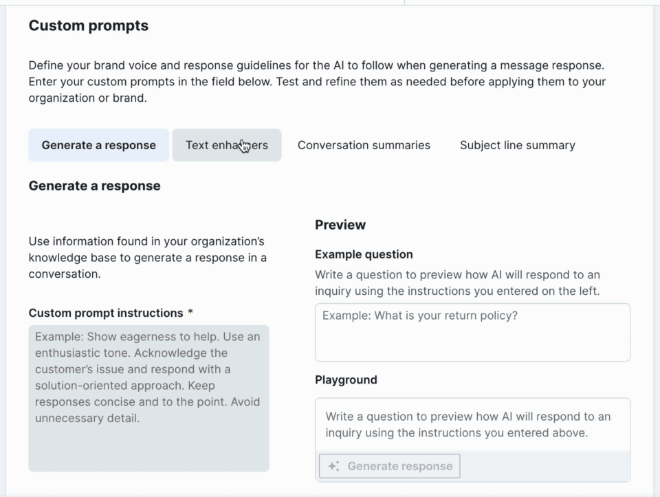 - Create Custom Instructions: Tailor the AI voice to match your brand using a free text field. For example, specify friendly language or exclude certain keywords from modification.